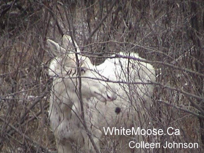 1 - Armstrong Strain - White Moose (young bull) photographed by Colleen Johnston on April 23, 2005 in the Foleyet area.